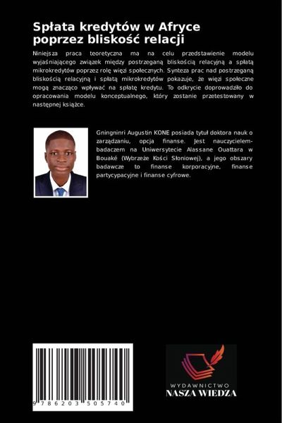 Niniejsza praca teoretyczna ma na celu przedstawienie modelu wyjäniaj¿cego zwi¿zek mi¿dzy postrzegan¿ blisko¿ci¿ relacyjn¿ a sp¿at¿ mikrokredytów poprzez rol¿ wi¿zi spo¿ecznych. Synteza prac nad postrzegan¿ blisko¿ci¿ relacyjn¿ i sp¿at¿ mikrokredytów pokazuje, ¿e wi¿zi spo¿eczne mog¿ znacz¿co wp¿ywä na sp¿at¿ kredytu. To odkrycie doprowadzi¿o do opracowania modelu konceptualnego, który zostanie przetestowany w nast¿pnej ksi¿¿ce.