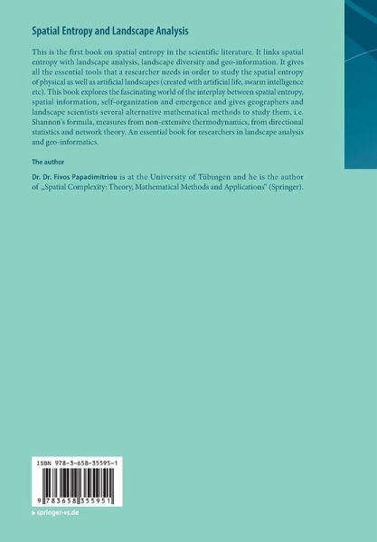 This is the first book on spatial entropy in the scientific literature. It links spatial entropy with landscape analysis, landscape diversity and geo-information. It gives all the essential tools that a researcher needs in order to study the spatial entropy of physical as well as artificial landscapes (created with artificial life, swarm intelligence etc). This book explores the fascinating world of the interplay between spatial entropy, spatial information, self-organization and emergence and gives geographers and landscape scientists several alternative mathematical methods to study them, i.e. Shannon's formula, measures from non-extensive thermodynamics, from directional statistics and network theory. An essential book for researchers in landscape analysis and geo-informatics.