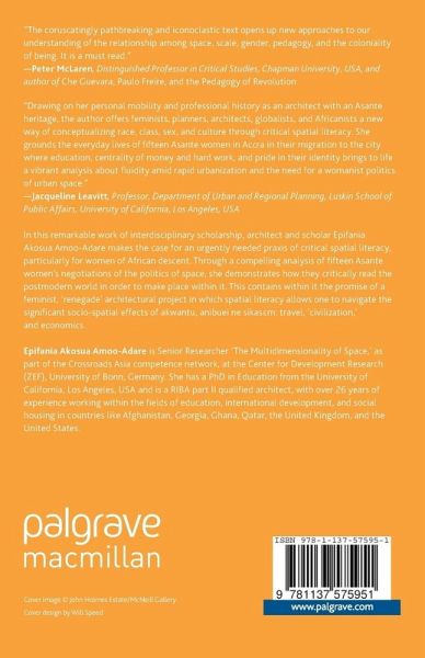 "Drawing on her personal mobility and professional history as an architect with an Asante heritage, the author offers feminists, planners, architects, globalists, and Africanists a new way of conceptualizing race, class, sex, and culture through critical spatial literacy. She grounds the everyday lives of fifteen Asante women in Accra in their migration to the city where education, centrality of money and hard work, and pride in their identity brings to life a vibrant analysis about fluidity amid rapid urbanization and the need for a womanist politics of urban space." - Jacqueline Leavitt, Professor, Department of Urban and Regional Planning, Luskin School of Public Affairs, University of California, Los Angeles, USA