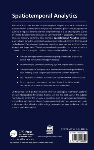 This book explains in very simple terms the concepts of spatiotemporal analytics and statistics, theories, and methods used. Each chapter introduces a case study as an example application for an in-depth learning process. The software used and the codes provided enable readers to learn statistics and use them effectively in their projects.