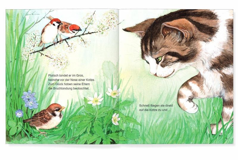 Diese Tiergeschichte berichtet vom gefährlichen Leben einen Spatzenkindes, das beim Erwachsenwerden lernt, dass in einem Vogelschwarm einer für alle und alle für einen zusammenwirken. Die Geschichte beinhaltet die naturkundlichen Gegebenheiten. Ein ausführlicher Sachtext schließt sich an.