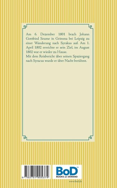 Am 6. Dezember 1801 brach Johann Gottfried Seume in Grimma bei Leipzig zu einer Wanderung nach Syrakus auf. Am 1. April 1802 erreichte er sein Ziel, im August 1802 war er wieder zu Hause. Mit seinem Reisbericht über den Spaziergang nach Syracus wurde er über Nacht berühmt.