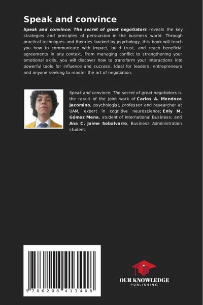 Speak and convince: The secret of great negotiators reveals the key strategies and principles of persuasion in the business world. Through practical techniques and theories backed by psychology, this book will teach you how to communicate with impact, build trust, and reach beneficial agreements in any context. From managing conflict to strengthening your emotional skills, you will discover how to transform your interactions into powerful tools for influence and success. Ideal for leaders, entrepreneurs and anyone seeking to master the art of negotiation.
