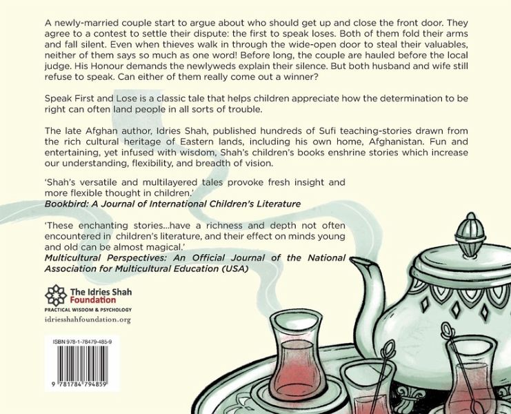 Speak First and Lose is a classic tale that helps children appreciate how the determination to be right can land people in all sorts of trouble. The story is brought to life with lovely illustrations - perfect to engage young minds whilst encouraging creative thinking.A newly-married couple start to argue about who should get up and close the front door. They agree to a contest to settle their dispute: the first to speak loses. Both of them fold their arms and fall silent. Even when thieves walk in through the wide-open door to steal their valuables, neither of them says so much as one word! Before long, the couple are hauled before the local judge. His Honour demands the newlyweds explain their silence. But both husband and wife still refuse to speak. Can either of them really come out a winner? The late Afghan author, Idries Shah, published hundreds of Sufi teaching-stories drawn from the rich cultural heritage of Eastern lands, including his own home, Afghanistan. Fun and entertaining, yet infused with wisdom, Shah's children's books enshrine stories which increase our understanding, flexibility, and breadth of vision. 'Shah's versatile and multilayered tales provoke fresh insight and more flexible thought in children.' Bookbird: A Journal of International Children's Literature 'These enchanting stories...have a richness and depth not often encountered in children's literature, and their effect on minds young and old can be almost magical.' Multicultural Perspectives: An Official Journal of the National Association for Multicultural Education (USA)