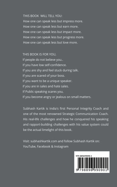 How to speak less and impress more? - Many people say, "Speak more," but what if you talk less and people are more impressed? - This book contains 11 truths about personality, communication, success, habits, values, professions, etc., that we never learnt from our parents or teachers. - The rarest are those who went through tough times and were mentored by the world's greatest teachers, who live their mark and impress the whole universe. - These people are happy, lucky, and progressive in their lives. Now, the time has come to learn their secrets. - Many important lessons have been learned about success in our lives, but nothing has happened. Why? You will know everything! - One book transforms one person, but the same book does not change Other's life; why? - Why was TQPS never shared with middle-class people? - This will be the ideal book for hardworking people stuck in the mud of struggles and scarcity. - The journey won't be easy, but success is guaranteed.
