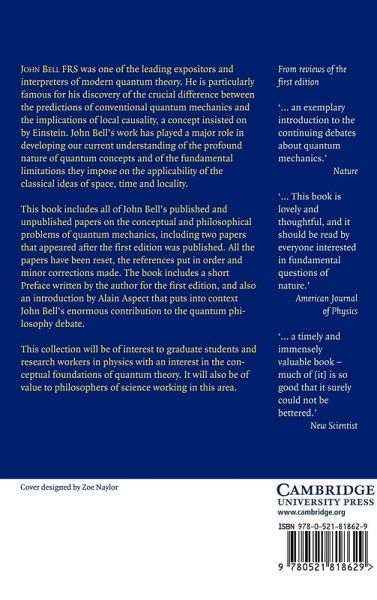 John Bell, FRS was one of the leading expositors and interpreters of modern quantum theory. He is particularly famous for his discovery of the crucial difference between the predictions of conventional quantum mechanics and the implications of local causality, a concept insisted on by Einstein. John Bell's work played a major role in the development of our current understanding of the profound nature of quantum concepts and of the fundamental limitations they impose on the applicability of the classical ideas of space, time and locality. This book includes all of John Bell's published and unpublished papers on the conceptual and philosophical problems of quantum mechanics, including two papers that appeared after the first edition was published. The book includes a short Preface written by the author for the first edition, and also an introduction by Alain Aspect that puts into context John Bell's enormous contribution to the quantum philosophy debate.