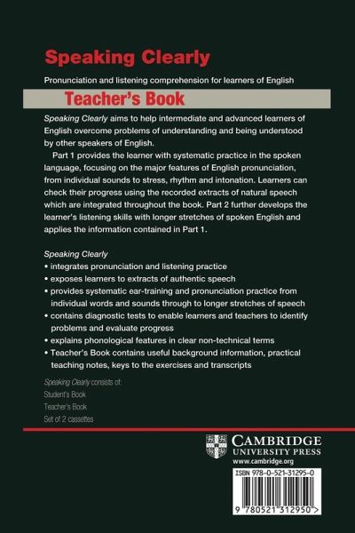 Speaking Clearly aims to help intermediate and advanced learners of English overcome problems of understanding and being understood by other speakers of English. It integrates pronunciation and listening; provides systematic ear-training and practice from individual words and sounds to longer stretches of speech; contains diagnostic tests and explains phonological features in clear, non-technical terms.