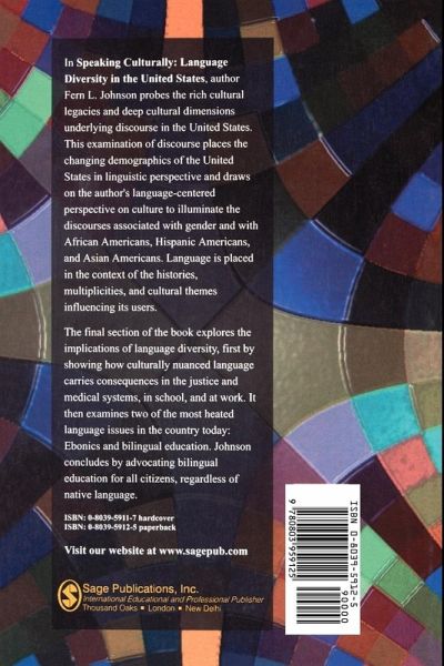 Speaking Culturally examines the changing cultural demographics of the United States from a linguistic perspective. Fern L Johnson illuminates the discourses associated with gender and with African Americans, Hispanic Americans and Asian Americans.