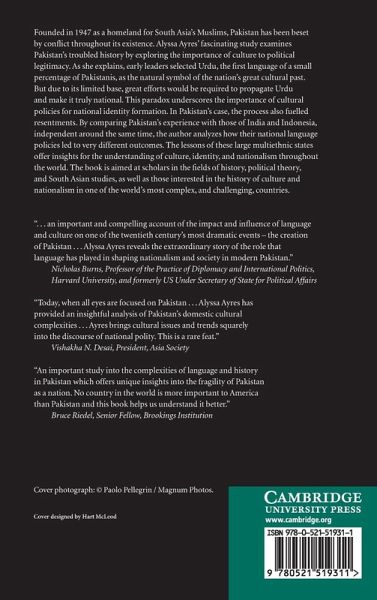 Alyssa Ayres' fascinating study examines Pakistan's troubled history by exploring the importance of culture to political legitimacy. Early leaders selected Urdu as the natural symbol of the nation's great cultural past, but due to its limited base great efforts would be required to make it truly national. This paradox underscores the importance of cultural policies for national identity formation. By comparing Pakistan's experience with those of India and Indonesia, the author analyzes how their national language policies led to very different outcomes. The lessons of these large multiethnic states offer insights for the understanding of culture, identity, and nationalism throughout the world. The book is aimed at scholars in the fields of history, political theory and South Asian studies, as well as those interested in the history of culture and nationalism in one of the world's most complex, and challenging, countries.