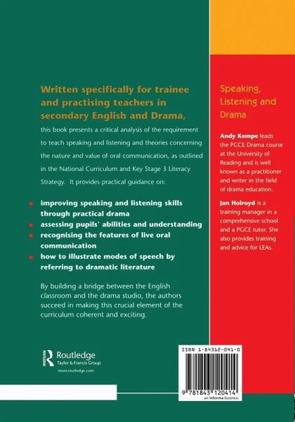 Written for practicing and trainee English and Drama specialists, this text clarifies what constitutes useful knowledge about spoken English and how pupils aged 11-16 can develop their skills in speaking and listening through the use of drama.