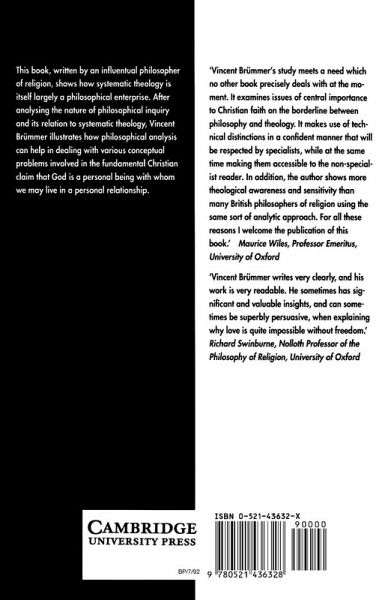 This book, written by an influential philosopher of religion, shows how systematic theology is itself largely a philosophical enterprise. After analysing the nature of philosophical inquiry and its relation to systematic theology, Vincent Brummer illustrates how philosophical analysis can help in dealing with various conceptual problems involved in the fundamental Christian claim that God is a personal being with whom we may live in a personal relationship.