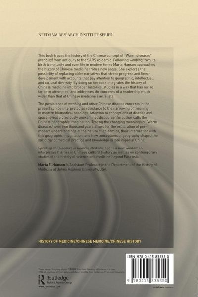 "Rich, detailed, and hugely impressive in scope, Marta Hanson's history of the "warm diseases" or the wenbing disease classification, from the earliest references in the canonical medical literature through to the present day, is a welcome addition to the Needham Research Institute Series of texts on East Asian medical history... the picture she paints is not only a fantastically thorough portrait of the Chinese wenbing disease concept that will be of interest to historians of East Asian medical history, but also a richly textured landscape that reveals much about the previously unexplored intersections between geography and disease and will have a broader appeal to anyone interested in the dynamic interplay between medicine and society." - Joanna Grant; Bulletin of the History of Medicine 2013.