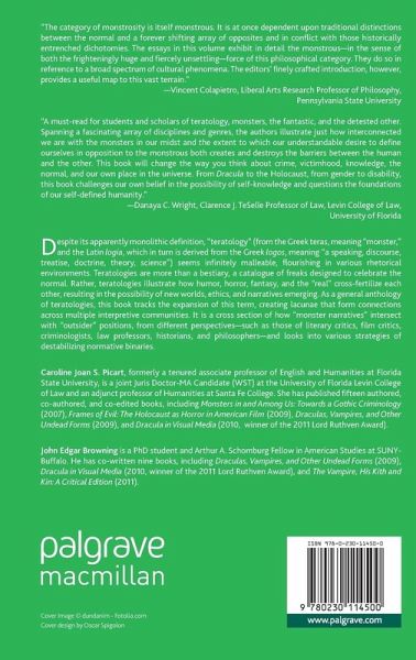 "This book is a must-read for students and scholars of teratology, monsters, the fantastic, and the detested other. Spanning a fascinating gulf of disciplines and genres, the authors illustrate just how interconnected we are with the monsters in our midst and the extent to which our understandable desire to define ourselves in opposition to the monstrous both creates and destroys the barriers between the human and the other. This book will change the way you think about crime, victimhood, knowledge, the normal, and our own place in the universe. From Dracula to the Holocaust, from gender to disability, this book challenges our own belief in the possibility of self-knowledge and questions the foundations of our self-defined humanity.' - Danaya C. Wright, Clarence J. TeSelle Professor of Law, Levin College of Law, University of Florida