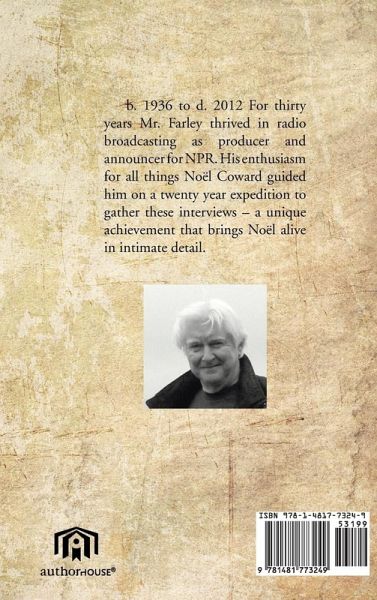 b. 1936 to d. 2012 For thirty years Mr. Farley thrived in radio broadcasting as producer and announcer for NPR. His enthusiasm for all things Noel Coward guided him on a twenty year expedition to gather these interviews - a unique achievement that brings Noel alive in intimate detail.
