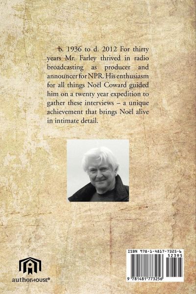 b. 1936 to d. 2012 For thirty years Mr. Farley thrived in radio broadcasting as producer and announcer for NPR. His enthusiasm for all things Noel Coward guided him on a twenty year expedition to gather these interviews - a unique achievement that brings Noel alive in intimate detail.
