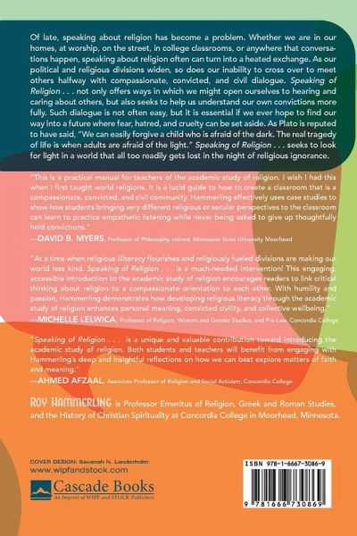 Of late, speaking about religion has become a problem. Whether we are in our homes, at worship, on the street, in college classrooms, or anywhere that conversations happen, speaking about religion often can turn into a heated exchange. As our political and religious divisions widen, so does our inability to cross over to meet others halfway with compassionate, convicted, and civil dialogue. Speaking of Religion . . . not only offers ways in which we might open ourselves to hearing and caring about others, but also seeks to help us understand our own convictions more fully. Such dialogue is not often easy, but it is essential if we ever hope to find our way into a future where fear, hatred, and cruelty can be set aside. As Plato is reputed to have said, "We can easily forgive a child who is afraid of the dark. The real tragedy of life is when adults are afraid of the light." Speaking of Religion seeks to look for light in a world that all too readily gets lost in the night of religious ignorance.