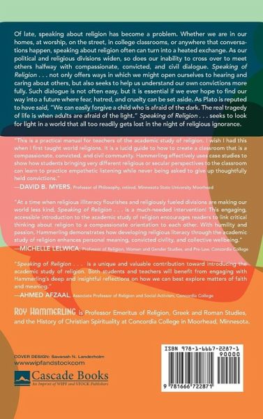 Of late, speaking about religion has become a problem. Whether we are in our homes, at worship, on the street, in college classrooms, or anywhere that conversations happen, speaking about religion often can turn into a heated exchange. As our political and religious divisions widen, so does our inability to cross over to meet others halfway with compassionate, convicted, and civil dialogue. Speaking of Religion . . . not only offers ways in which we might open ourselves to hearing and caring about others, but also seeks to help us understand our own convictions more fully. Such dialogue is not often easy, but it is essential if we ever hope to find our way into a future where fear, hatred, and cruelty can be set aside. As Plato is reputed to have said, "We can easily forgive a child who is afraid of the dark. The real tragedy of life is when adults are afraid of the light." Speaking of Religion seeks to look for light in a world that all too readily gets lost in the night of religious ignorance.
