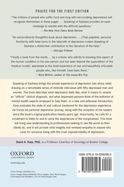 Speaking of Sadness, based on fifty in-depth interviews, provides first-hand accounts of the depression experience while discovering clear regularities in the ways that personal identities are shaped over the course of an "illness career."
