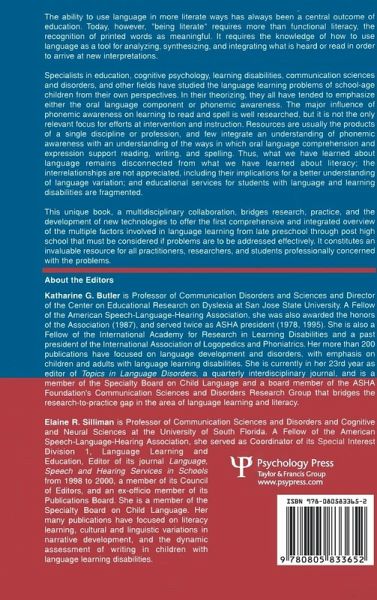 The ability to use language in more literate ways has always been a central outcome of education. Today, however, "being literate" requires more than functional literacy, the recognition of printed words as meaningful. It requires the knowledge of how to use language as a tool for analyzing, synthesizing, and integrating what is heard or read in order to arrive at new interpretations. Specialists in education, cognitive psychology, learning disabilities, communication sciences and disorders, and other fields have studied the language learning problems of school age children from their own perspectives. All have tended to emphasize either the oral language component or phonemic awareness. The major influence of phonemic awareness on learning to read and spell is well-researched, but it is not the only relevant focus for efforts in intervention and instruction. An issue is that applications are usually the products of a single discipline or profession, and few integrate an understanding of phonemic awareness with an understanding of the ways in which oral language comprehension and expression support reading, writing, and spelling. Thus, what we have learned about language remains disconnected from what we have learned about literacy; interrelationships between language and literacy are not appreciated; and educational services for students with language and learning disabilities are fragmented as a result. This unique book, a multidisciplinary collaboration, bridges research, practice, and the development of new technologies. It offers the first comprehensive and integrated overview of the multiple factors involved in language learning from late preschool through post high school that must be considered if problems are to be effectively addressed. Practitioners, researchers, and students professionally concerned with these problems will find the book an invaluable resource.