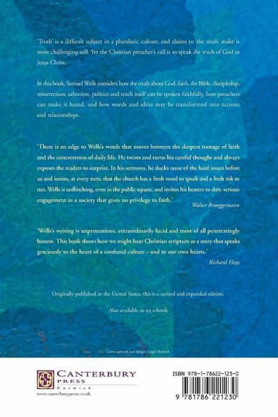 Truth' is a difficult subject in a pluralistic culture, and 'the truth' is even more challenging. Yet the preacher's call is to be a speaker of truth - the truth of God in Jesus Christ. What does it take to speak the truth faithfully as a preacher of the gospel, for that truth to be heard, and for words and ideas to generate actions and build relationships? Samuel Wells has learned that speaking the truth means telling the Christian story alongside the contemporary secular story. It means helping your hearers perceive both the harmonies and the dissonance between the two. It means inviting them, with both conviction and humility, to decide how their own story is going to be shaped by this truth. In this volume, he reflects on the practice of speaking about God, faith, the Bible, discipleship, resurrection, salvation, politics and truth, and on preaching that resonates in particular contexts. It is a book to encourage and give confidence to all preachers, and preachers in training.