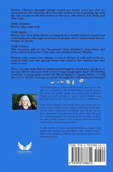 Debbie Hansen thought things would get better once her dad returned from the Vietnam War, but life seems to be matching up with the title of one of the hit movies of the year, The Good, The Bad, and The Ugly. THE GOOD: Dad is alive and well. THE BAD: Krista, her deaf little sister, is trapped in a world without sound and communicates through tantrums if people don't understand her attempts to speak. THE UGLY: The meanest girl of the "in-group" from Debbie's class hates her guts, which leaves her with only one faithful friend. Maybe. Debbie only wants two things: to teach Krista to talk and to be accepted back into the group where she used to be-before her dad went to war. How can she help Krista understand English, much less speak it, if no one allows the poor kid to learn sign language? And will Debbie continue to keep quiet under the Mean Queen's snarky abuse, or will she screw up the courage to speak through her self-imposed silence?