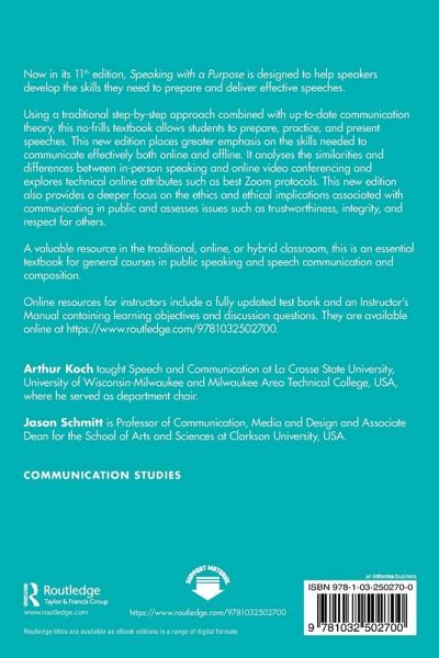 Now in its 11th edition, Speaking with a Purpose is designed to help speakers develop the skills they need to prepare and deliver effective speeches.