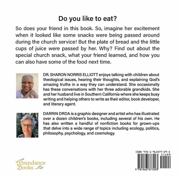 What's so special about this church snack? In Special Church Snack, a young girl eagerly watches as plates of bread and tiny cups of juice are passed around during a church service. Excited for a treat, she's surprised when the snack skips right past her! Why can't she have some? With the help of her parents, she embarks on a journey to understand the true meaning of communion-learning about Jesus, His great love, and the significance of this sacred meal. This beautifully written and illustrated book presents biblical truths in a way that children can understand, helping them grasp the importance of faith, forgiveness, and remembering Christ's sacrifice. With engaging rhymes and warm, relatable storytelling, Special Church Snack is a perfect resource for parents, Sunday school teachers, and churches to introduce young children to the meaning behind the Lord's Supper. Whether your child is asking questions about communion for the first time or preparing for their own special moment, this book will guide them with clarity, joy, and biblical wisdom. The I Really Need to Know series by Sharon Norris Elliott is a delightful collection of seven picture books designed to teach foundational Christian principles to young children in a fun and relatable way. With engaging stories and vibrant illustrations, each book explores important biblical lessons, making them easy for young readers to understand and apply to their own lives. This heartwarming series covers a wide range of topics that help children navigate faith, emotions, and values:Why I Get Into Trouble - A gentle introduction to the Genesis story and the concept of sin. Mommy Cried This Morning - A compassionate guide to understanding grief and death from a child's perspective. Special Church Snack - A thoughtful story that explains the meaning of communion, just in time for Easter. But He Didn't Say, "I'm Sorry." - A lesson about forgiveness and reconciliation, teaching children the importance of making amends. Church Bath - A lighthearted exploration of baptism and its significance in the Christian faith. Funny Math - A creative way to show how God's plans don't always add up the way we expect, but they are always perfect. I Want What I Want When I Want It Right Now - A fun yet insightful tale that encourages patience and trust in God's timing. Each story is crafted with care to bring biblical principles into everyday situations that young readers can relate to. Perfect for families, Sunday school, or Christian educators, the I Really Need to Know series is designed to nurture a child's faith and understanding of God's love. Discover how these stories can help your children grow in their faith journey, one book at a time.