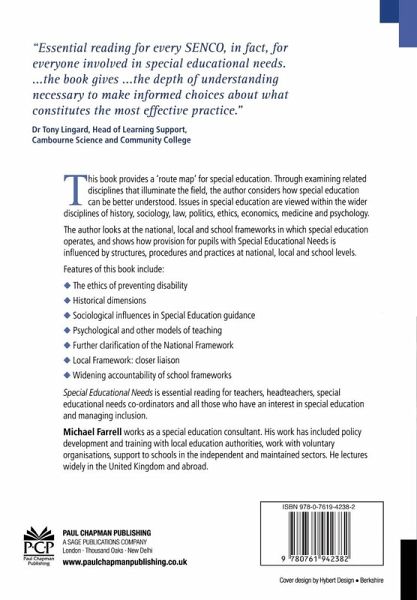Introduction Historical Dimensions Legal Definitions Relating to SEN, Local Criteria and the SENDIST Political Judgements, Inclusion and the Future of Special Schools Ethical Issues in Preventing and Treating Disabilities and Learning Difficulties SEN Funding in a Re-Distributive Society The Medical Model in an Integrated Approach Sociological Influences in Special Education Guidance and Perspectives Psychological and Other Approaches to Teaching and Learning National Frameworks Further Clarity Local Frameworks Closer Liaison School Frameworks Widening Accountability