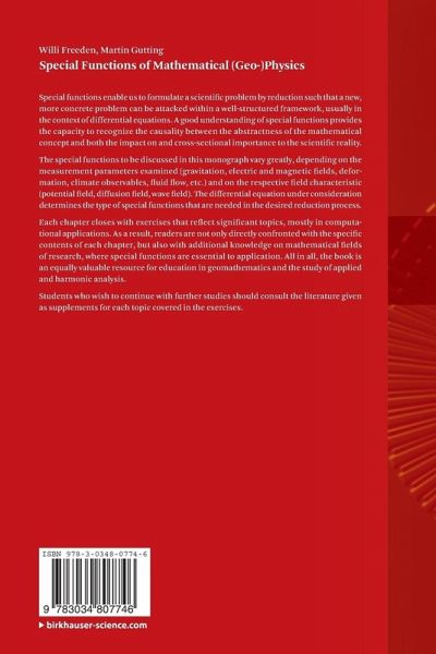 Special functions enable us to formulate a scientific problem by reduction such that a new, more concrete problem can be attacked within a well-structured framework, usually in the context of differential equations. A good understanding of special functions provides the capacity to recognize the causality between the abstractness of the mathematical concept and both the impact on and cross-sectional importance to the scientific reality.The special functions to be discussed in this monograph vary greatly, depending on the measurement parameters examined (gravitation, electric and magnetic fields, deformation, climate observables, fluid flow, etc.) and on the respective field characteristic (potential field, diffusion field, wave field). The differential equation under consideration determines the type of special functions that are needed in the desired reduction process.Each chapter closes with exercises that reflect significant topics, mostly in computational applications. As a result, readers are not only directly confronted with the specific contents of each chapter, but also with additional knowledge on mathematical fields of research, where special functions are essential to application. All in all, the book is an equally valuable resource for education in geomathematics and the study of applied and harmonic analysis.Students who wish to continue with further studies should consult the literature given as supplements for each topic covered in the exercises.