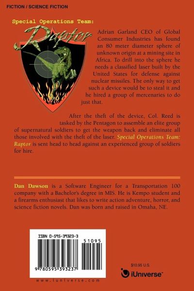 Adrian Garland CEO of Global Consumer Industries has found an 80 meter diameter sphere of unknown origin at a mining site in Africa. To drill into the sphere he needs a classified laser built by the United States for defense against nuclear missiles. The only way to get such a device would be to steal it and he hired a group of mercenaries to do just that. After the theft of the device, Col. Reed is tasked by the Pentagon to assemble an elite group of supernatural soldiers to get the weapon back and eliminate all those involved with the theft of the laser. Special Operations Team: Raptor is sent head to head against an experienced group of soldiers for hire.