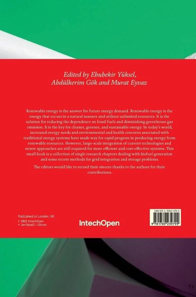 Renewable energy is the answer for future energy demand. Renewable energy is the energy that occurs in a natural manner and utilizes unlimited resources. It is the solution for reducing the dependence on fossil fuels and diminishing greenhouse gas emission. It is the key for cleaner, greener, and sustainable energy. In today's world, increased energy needs and environmental and health concerns associated with traditional energy systems have made way for rapid progress in producing energy from renewable resources. However, large-scale integration of current technologies and newer approaches are still required for more efficient and cost-effective systems. This small book is a collection of single research chapters dealing with biofuel generation and some recent methods for grid integration and storage problems. The editors would like to record their sincere thanks to the authors for their contributions.