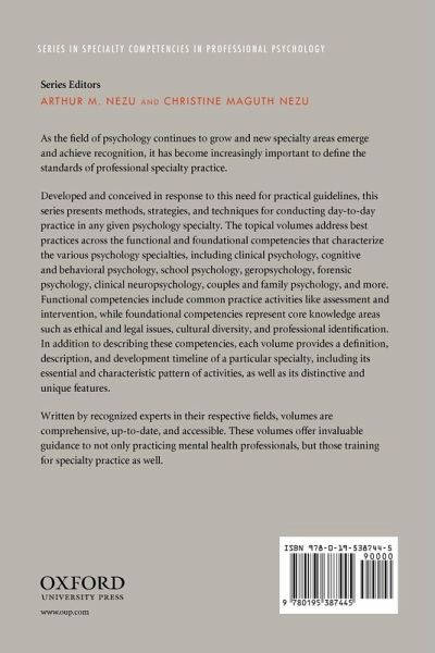Written by recognized experts in their respective fields, the books of the Series in Specialty Competencies in Professional Psychology are comprehensive, up-to-date, and accessible. These volumes offer invaluable guidance to not only practicing mental health professionals, but those training for specialty practice as well.