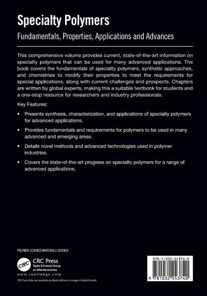 Covers the fundamentals of specialty polymers, synthetic approaches, and chemistries to modify their properties for special applications, along with current challenges and prospects.