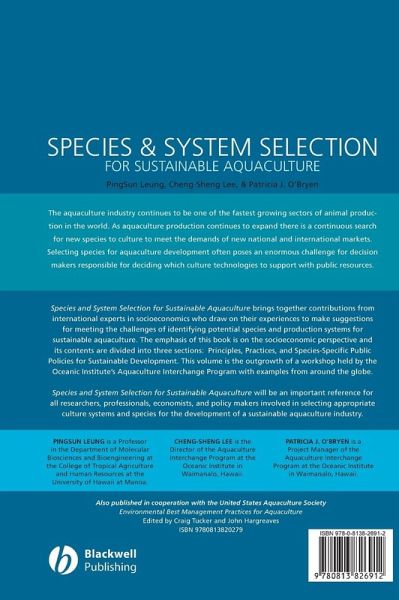 Published in Cooperation with THE UNITED STATES AQUACULTURE SOCIETY The aquaculture industry continues to be one of the fastest growing sectors of animal production in the world. As aquaculture production continues to expand there is a continuous search for new species to culture to meet the demands of new national and international markets. Selecting species for aquaculture development often poses an enormous challenge for decision makers responsible for deciding which culture technologies to support with public resources. Species and System Selection for Sustainable Aquaculture brings together contributions from international experts in socioeconomics who draw on their experiences to make suggestions for meeting the challenges of identifying potential species and production systems for sustainable aquaculture. The emphasis of this book is on the socioeconomic perspective and its contents are divided into three sections: Principles, Practices, and Species-Specific Public Policies for Sustainable Development. This volume is the outgrowth of a workshop held by the Oceanic Institute's Aquaculture Interchange Program with examples from around the globe. Species and System Selection for Sustainable Aquaculture will be an important reference for all researchers, professionals, economists, and policy makers involved in selecting appropriate culture systems and species for the development of a sustainable aquaculture industry.