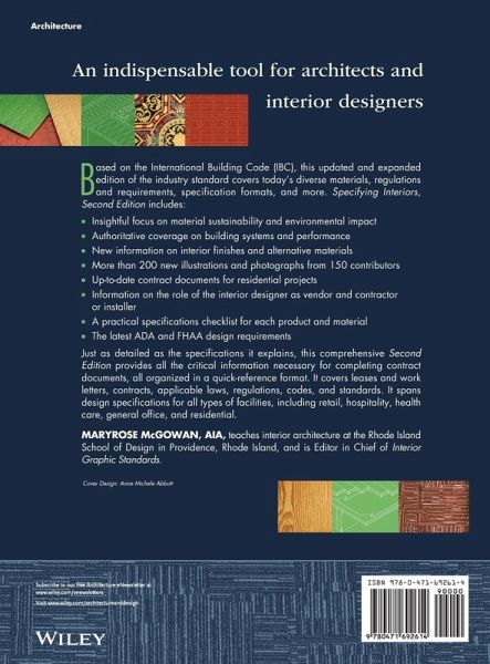 Based on the International Building Code (IBC), this updated and expanded edition of the industry standard covers today's diverse materials, regulations and requirements, specification formats, and more. Specifying Interiors, Second Edition includes: