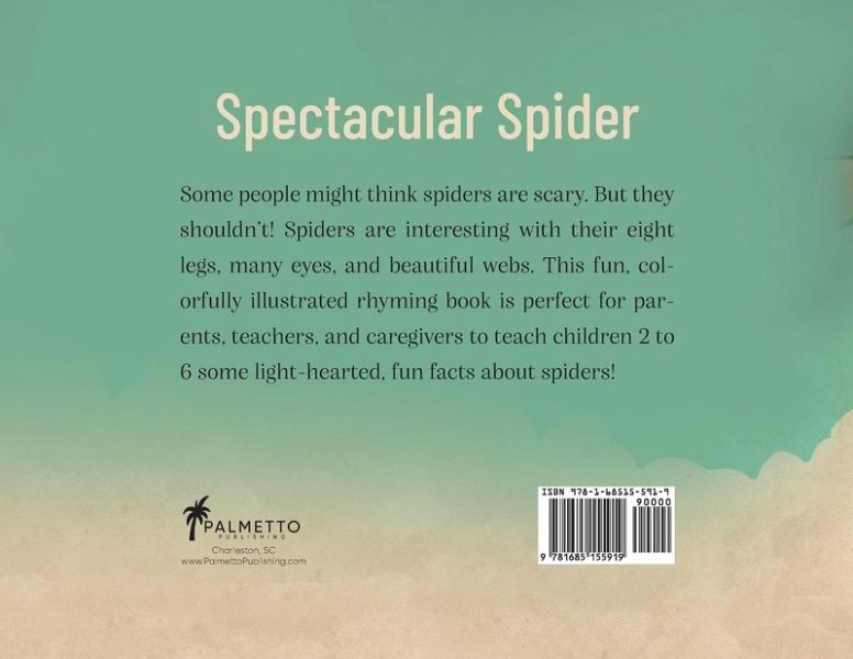 Some people might think spiders are scary. But they shouldn't! Spiders are interesting with their eight legs, many eyes, and beautiful webs. This fun, colorfully illustrated rhyming book is perfect for parents, teachers, and caregivers to teach children 2 to 6 some light-hearted, fun facts about spiders!