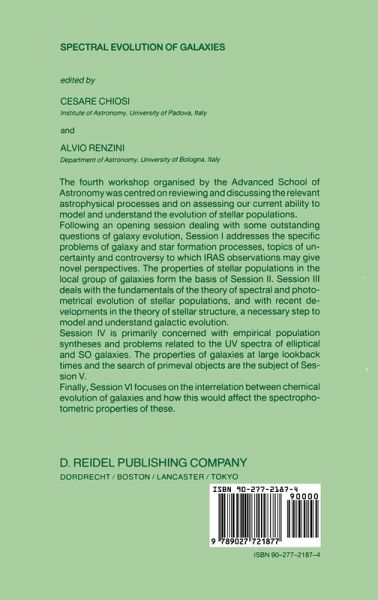 As it was said by one of the participants to this workshop" In our attempts to understand the spectral evolution of galaxies, we are fortunate indeed to have the ability to look back in time and observe galaxies as they were billions of years ago. Perhaos in no other discipline is it possible to gain such a direct view to hJstory. The galaxies we seek to study are remote, their light faint, and thus only recently has it become technicaJlv feasible to sample the spectra of normal luminosity galaxies at lookback times of five billion years or more" .... or, perhaps. even to see galaxies in the process of their formation. or shortly afterwards. This fourth workshop organized by the "Advanced School ot Astronomy was indeed centered on the "Spectral Evolution of Galaxies". on reviewing and discussing the relevant astrophysical processes and on assessing our current ability to model and understand the evolution of stellar populations. Following an opening session dealing with some outstanding questions of galaxy evolution. Session I addressed the specific problems of galaxy and star formation processes. topics of uncertainty and controversy to which IRAS observations may give novel perspectives. The properties of stellar populations in the local group of galaxies formed the basis of Session II. Session III dealt with the fundaments of the theory of spectral and photometrical evolution of stellar populations. and with recent developments in the theory of stellar structure. a necessary step to model and understand galactic evolution.