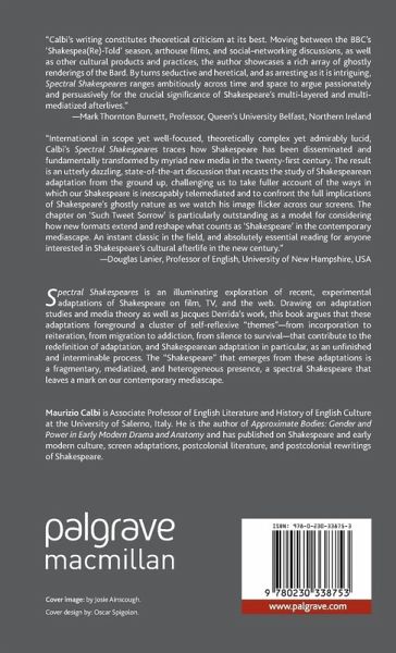 "International in scope yet well-focused, theoretically complex yet admirably lucid, Maurizio Calbi's Spectral Shakespeares traces how Shakespeare has been disseminated and fundamentally transformed by myriad new media in the twenty-first century. The result is an utterly dazzling, state-of-the-art discussion that recasts the study of Shakespearean adaptation from the ground up, challenging us to take fuller account of the ways in which our Shakespeare is inescapably telemediated and to confront the full implications of Shakespeare's ghostly nature as we watch his image flicker across our screens. The chapter on 'Such Tweet Sorrow' is particularly outstanding as a model for considering how new formats extend and reshape what counts as 'Shakespeare' in the contemporary mediascape. An instant classic in the field, and absolutely essential reading for anyone interested in Shakespeare's cultural afterlife in the new century." - Douglas Lanier, Professor of English, University of New Hampshire, USA