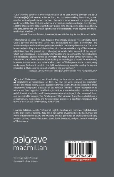 "International in scope yet well-focused, theoretically complex yet admirably lucid, Maurizio Calbi's Spectral Shakespeares traces how Shakespeare has been disseminated and fundamentally transformed by myriad new media in the twenty-first century. The result is an utterly dazzling, state-of-the-art discussion that recasts the study of Shakespearean adaptation from the ground up, challenging us to take fuller account of the ways in which our Shakespeare is inescapably telemediated and to confront the full implications of Shakespeare's ghostly nature as we watch his image flicker across our screens. The chapter on 'Such Tweet Sorrow' is particularly outstanding as a model for considering how new formats extend and reshape what counts as 'Shakespeare' in the contemporary mediascape. An instant classic in the field, and absolutely essential reading for anyone interested in Shakespeare's cultural afterlife in the new century." - Douglas Lanier, Professor of English, University of New Hampshire, USA