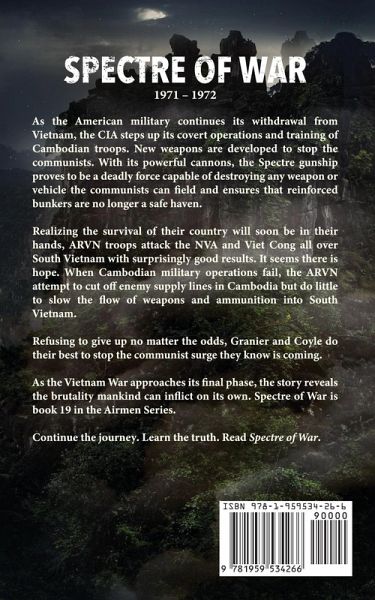 As the American military continues its withdrawal from Vietnam, the CIA steps up its covert operations and training of Cambodian troops. New weapons are developed to stop the communists. With its powerful cannons, the Spectre gunship proves to be a deadly force capable of destroying any weapon or vehicle the communists can field and ensures that reinforced bunkers are no longer a safe haven. Realizing the survival of their country will soon be in their hands, ARVN troops attack the NVA and Viet Cong all over South Vietnam with surprisingly good results. It seems there is hope. When Cambodian military operations fail, the ARVN attempt to cut off enemy supply lines in Cambodia but do little to slow the flow of weapons and ammunition into South Vietnam. Refusing to give up no matter the odds, Granier and Coyle do their best to stop the communist surge they know is coming. As the Vietnam War approaches its final phase, the story reveals the brutality mankind can inflict on its own. Spectre of War is book 19 in the Airmen Series. Continue the journey. Learn the truth. Read Spectre of War.