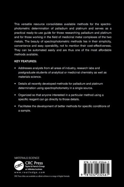 This versatile resource consolidates new and available methods for the determination of palladium and platinum and serves as a practical ready-to-use guide for those researching palladium and platinum and for those working in the field of medicinal metal complexes of the two metals.