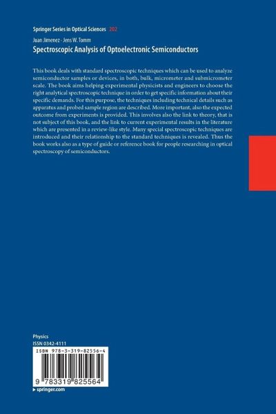This book deals with standard spectroscopic techniques which can be used to analyze semiconductor samples or devices, in both, bulk, micrometer and submicrometer scale. The book aims helping experimental physicists and engineers to choose the right analytical spectroscopic technique in order to get specific information about their specific demands. For this purpose, the techniques including technical details such as apparatus and probed sample region are described. More important, also the expected outcome from experiments is provided. This involves also the link to theory, that is not subject of this book, and the link to current experimental results in the literature which are presented in a review-like style. Many special spectroscopic techniques are introduced and their relationship to the standard techniques is revealed. Thus the book works also as a type of guide or reference book for people researching in optical spectroscopy of semiconductors.