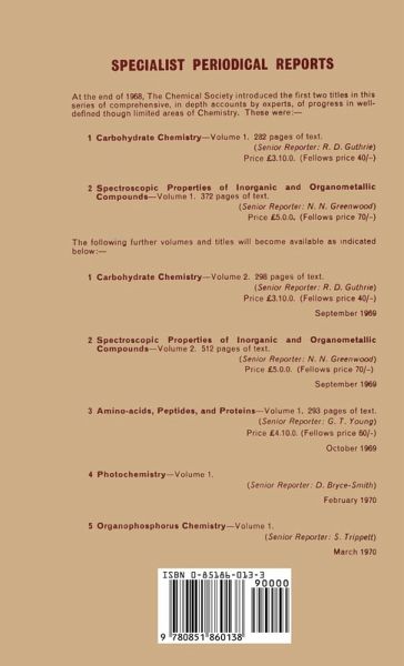 Spectroscopic Properties of Inorganic and Organometallic Compounds provides a unique source of information on an important area of chemistry. Divided into sections mainly according to the particular spectroscopic technique used, coverage in each volume includes: NMR (with reference to stereochemistry, dynamic systems, paramagnetic complexes, solid state NMR and Groups 13-18); nuclear quadrupole resonance spectroscopy; vibrational spectroscopy of main group and transition element compounds and coordinated ligands; and electron diffraction. Reflecting the growing volume of published work in this field, researchers will find this Specialist Periodical Report an invaluable source of information on current methods and applications. Specialist Periodical Reports provide systematic and detailed review coverage in major areas of chemical research. Compiled by teams of leading experts in their specialist fields, this series is designed to help the chemistry community keep current with the latest developments in their field. Each volume in the series is published either annually or biennially and is a superb reference point for researchers. www.rsc.org/spr