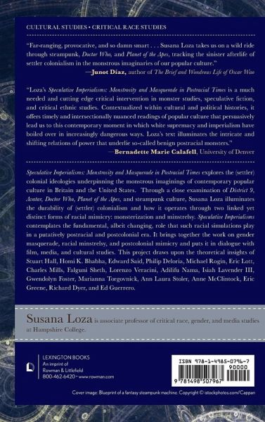 Speculative Imperialisms: Monstrosity and Masquerade in Postracial Times explores the(settler) colonial ideologies underpinning the monstrous imaginings of contemporary popular culture in the Britain and the US. Through a close examination of District 9, Avatar, Doctor Who, Planet of the Apes, and steampunk culture, Susana Loza illuminates the durability of (settler) colonialism and how it operates through two linked yet distinct forms of racial mimicry: monsterization and minstrelsy. Speculative Imperialisms contemplates the fundamental, albeit changing, role that such racial simulations play in a putatively postracial and post-colonial era. It brings together the work on gender masquerade, racial minstrelsy, and postcolonial mimicry and puts it in dialogue with film, media, and cultural studies. This project draws upon the theoretical insights of Stuart Hall, Homi K. Bhabha, Edward Said, Philip Deloria, Michael Rogin, Eric Lott, Charles Mills, Falguni Sheth, Lorenzo Veracini, Adilifu Nama, Isiah Lavender III, Gwendolyn Foster, Marianna Torgovnick, Ann Laura Stoler, Anne McClintock, Eric Greene, Richard Dyer, and Ed Guerrero.