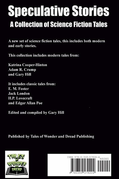 A collection of science fiction stories, this new book includes modern tales from: Katrina Cooper-Hinton, Adam R. Crump and Gary Hill. It also includes classic tales from: E. M. Foster, Jack London, H.P. Lovecraft and Edgar Allan Poe. Edited and compiled by Gary Hill.