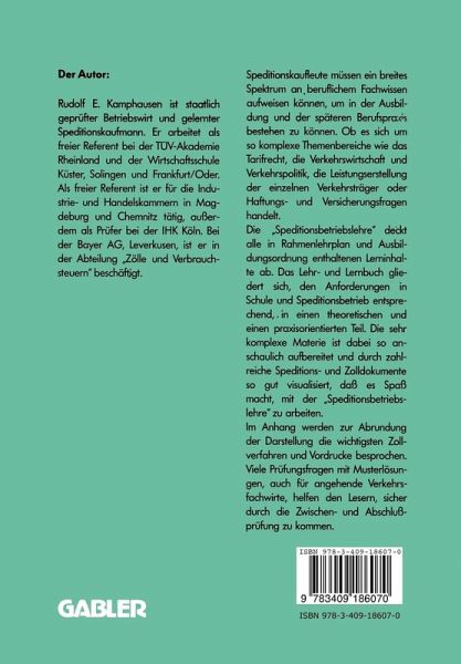 Dieses Buch spricht Auszubildende zurn/zur Speditionskaufmann/frau, Umschfiler und Umschfilerinnen fiir dieses Berufsbild und Interessenten fUr die Weiterbildung zurn/zur Verkehrsfachwirtlin an. Es gliedert sich, den Nacbfragen und den Wiinschen vieler Schfiler und Schfilerinnen im Speditionsgewerbe entsprechend, in einen praktischen und einen theoretischen Teil sowie in zwei priifungsrelevante Teile fUr die Abschlu8priifungen zurn/zur Speditionskaufmann/ frau und Verkehrsfachwirtlin. Speditions-und Zolldokumente werden umfangreicher als ublich vorgestellt. Nachstehend soU erliiutert werden, warum eine solche Gliederung und der Umfang der abgedruckten Formulare sinnvoll erscheinen. Auszubildende und Umschfiler haben immer wieder die starke Diskrepanz der Spedi tionsinhalte im Schulunterricht einerseits und im Betrieb andererseits, sei es in den Aus bildungshalbjahren oder im Betriebspraktikum, bemiingelt. Dabei fiel auf, daB dies schwerpunktmiiBig in den Bereichen der Tarife (Frachtberechnung) und des Tarifrechts (Gesetze, Verordnungen und Bestimmungen) der Fall war. Auch wurden im Unterricht oft die in der Praxis angewandten Speditions-und Zollformulare vermiBt. Dies gilt auch fiir technische Details der Verkehrs-und TransportmiUel und spezielle praktische Hinweise fiir die Verladung von Gutem. Dariiber hinaus war festzustellen, daB strukturelle Veriinderungen in verkehrswirtschaftli chen Zusammenhiingen nicht oder nur ungenugend behandelt wurden. Verkehrs- und umweltpolitische Aspekte sind in der herkommlichen Schulbuchliteratur der Speditions branche nicht behandelt, Tendenzen und Wertungen in der Tarifpolitik nicht analysiert und Verzahnungen oder Abhiingigkeiten nur oberfliichlich erwiihnt worden.