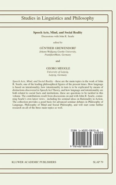 Speech Acts, Mind, and Social Reality - these are the main topics in the work of John R. Searle, one of the leading philosophical figures of the present times. How language is based on intentionality, how intentionality in turn is to be explicated by means of distinctions discovered in Speech Act Theory, and how language and intentionality are both related to social facts and institutions - these are questions to be tackled in this volume. The contributions result from discussions on and with John R. Searle, containing Searle's own latest views - including his seminal ideas on Rationality in Action. The collection provides a good basis for advanced seminar debates in Philosophy of Language, Philosophy of Mind, and Social Philosophy, and will also stimulate some further research on all of the three main topics.