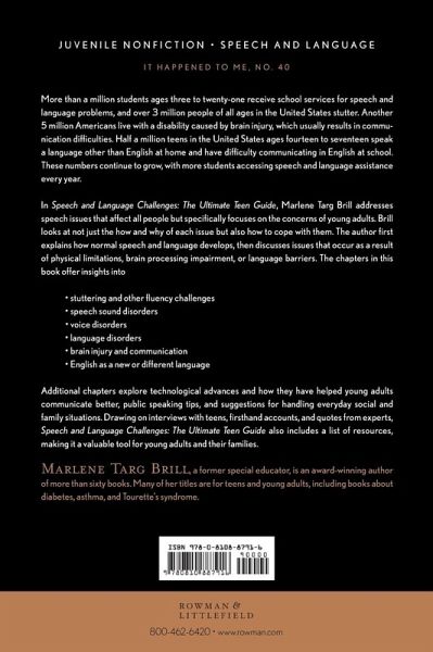 This book will address the speech issues that affect all people, but specifically focus on the concerns of young adults—not just the how and whys of each issue, but how to cope with them. It will include teen interviews/stories, expert quotes, history of different conditions, definitions of technical terms necessary for understanding the conditions, media concerning speech problems (such as The King’s Speech), and short biographies of well-known people who have dealt with and/or overcome these same issues.