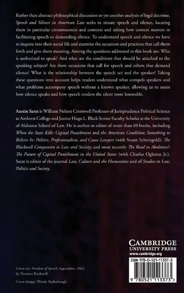 Rather than abstract philosophical discussion or yet another analysis of legal doctrine, Speech and Silence in American Law seeks to situate speech and silence, locating them in particular circumstances and contexts and asking how context matters in facilitating speech or demanding silence. To understand speech and silence we have to inquire into their social life and examine the occasions and practices that call them forth and that give them meaning. Among the questions addressed in this book are: who is authorized to speak? And what are the conditions that should be attached to the speaking subject? Are there occasions that call for speech and others that demand silence? What is the relationship between the speech act and the speaker? Taking these questions into account helps readers understand what compels speakers and what problems accompany speech without a known speaker, allowing us to assess how silence speaks and how speech renders the silent more knowable.