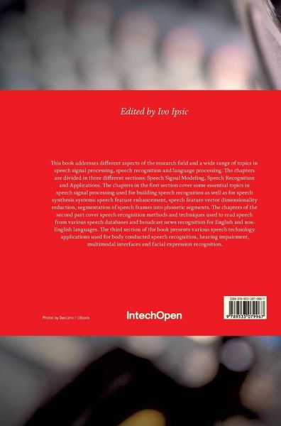 This book addresses different aspects of the research field and a wide range of topics in speech signal processing, speech recognition and language processing. The chapters are divided in three different sections: Speech Signal Modeling, Speech Recognition and Applications. The chapters in the first section cover some essential topics in speech signal processing used for building speech recognition as well as for speech synthesis systems: speech feature enhancement, speech feature vector dimensionality reduction, segmentation of speech frames into phonetic segments. The chapters of the second part cover speech recognition methods and techniques used to read speech from various speech databases and broadcast news recognition for English and non-English languages. The third section of the book presents various speech technology applications used for body conducted speech recognition, hearing impairment, multimodal interfaces and facial expression recognition.